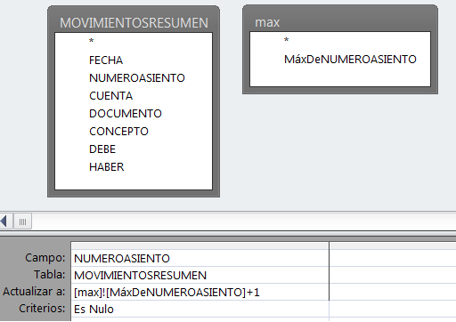 ... Y posteriormente actualizar el dato del campo numeroasiento. ¿Correcto?