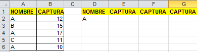 Donde quieres la nueva tabla, ingresa los encabezados de las columna que te interese extraer (pueden ser todos los de la base o sólo algunos). Estos deben estar EN LA MISMA HOJA donde está la base de datos. (Luego puedes copiarla y llevarla a otra hoja). Area pintada de verde.