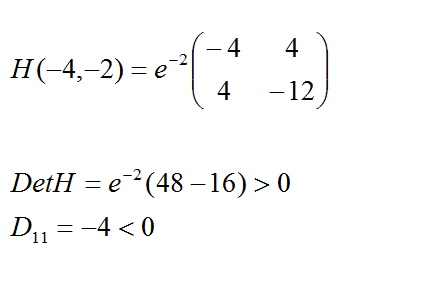 $$\begin{align}&z=\left(x^2-2y^2\right)e^{x-y}\end{align}$$la rspta indica que es en el punto (-4:-2) que hay un máximo relativo