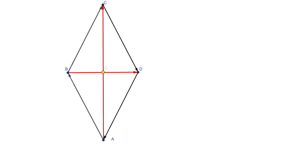 esta última igualdad nos dice que el lado vector AD es la suma de la mitad de los vectores diagonales, luego se cortan en el punto medio
