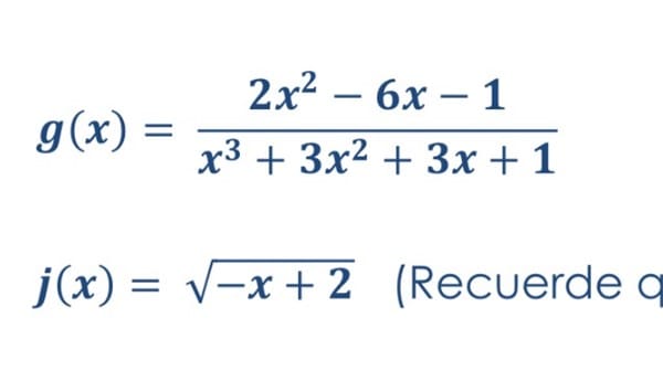La segunda función es irracional (una raíz cuadrada): Los radicales cuadráticos solo se pueden calcular cuando el radicando (lo de dentro ) es mayor o igual que cero. Por eso para calcular el Domino de j(x) hay que resolver una inecuación: