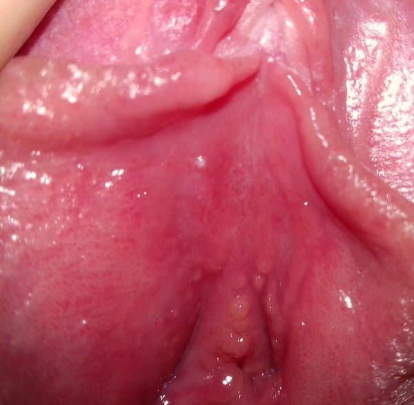 A qué pueden deberse unos las lesiones que son como granitos ubicados en el área del vestíbulo,¿específicamente arriba del orificio de la uretra? Estos son del mismo color de la piel, de hecho son muy difíciles de ver, pero al tacto si son notorios, y si los toco produce ardor, me han impedido tener relaciones sexuales durante 2 meses ya que molesta mucho el contacto. He asistido a 2 médicos y ninguno ha logrado diagnosticarme, ni notar las lesiones, ya que como utilizan guantes no pueden sentir las protuberancias como las siento yo. He buscado por internet y no se me parecen a ninguna ETS, descarto molusco contagioso, herpes, etc. Me tomé esta foto donde se aprecian: