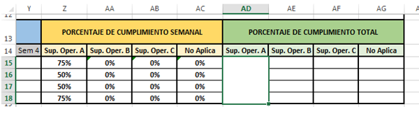 Que en la columna AD aparezca el calculo de el porcentaje de la columna Z.