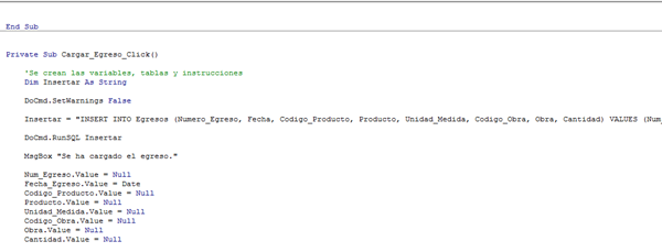 El codigo para insertar los datos en el registro es el siguiente.