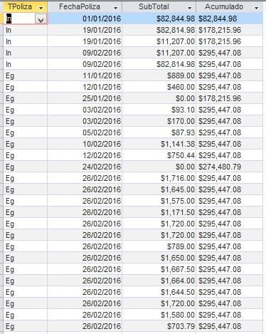 Objetivo: Qué el acumulado sea en base a la fecha (cronologicamente) y de ser posible al Tpoliza