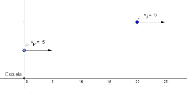 Pablo en bici va a 18km/h pasa por la puerta de la escuela . Julián que va por el mismo camino a una veloc de 5m/sg esta a 20m