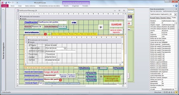 1.- Mi Pantalla de captura del Formulario (VerificacionYDescarga) con el subformulario (Subformulario Captura_Art) que es donde pongo mi captura del artículo su precio y cantidad. Y que cuando el artículo esta ya visible, si de doy clic en cualquier campo del subformulario esté vacío o no, no importa. Cada clic, me resta de mi inventario las cantidades señaladas de todos los artículos que muestre mi subformulario.