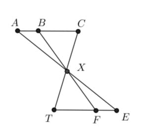En la figura se tiene que BX=TX=TE y que ángulo en C = ángulo CBX. Probar que AC = TE.