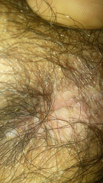 Mi fisura es muy pequeña, a simple vista no se percibe, pero si se abren los pliegues se puede percibir.