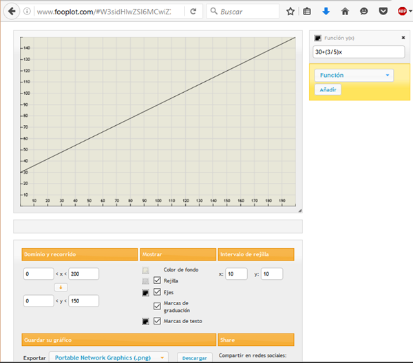 3. Elabora la gráfica de la función lineal. Para ello utiliza el software de la página www.fooplot.com. Desde este sitio exporta la gráfica en formato .pdf o .png, descárgala y pégala en tu documento.