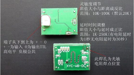 Es un módulo sensor de movimiento radar Low-Cost y no hay descripción de la configuración en inglés. Solo estas notas en chino.