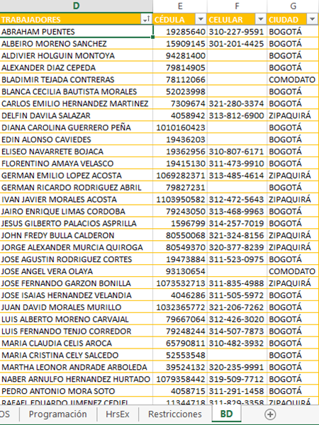 Con un combobox selecciono los nombres. Los cuales después los inserto en la hoja programación. Necesito que dependiendo el nombre, me copie también la cédula y el teléfono correspondientes y los pegue en la hoja programación.