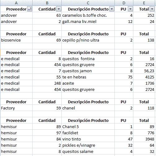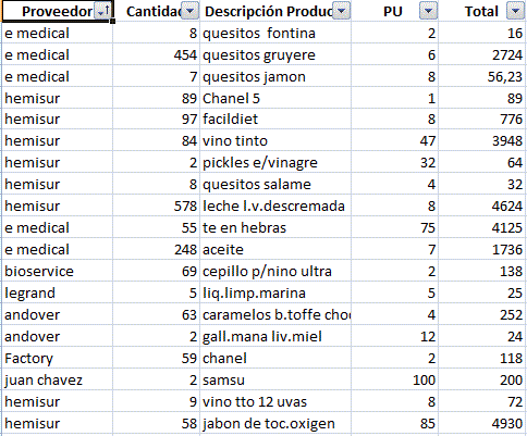 Bien, verás que sólo debes indicar cuál es la celda donde inicia la base y, espero, estén los nombres de los proveedores.