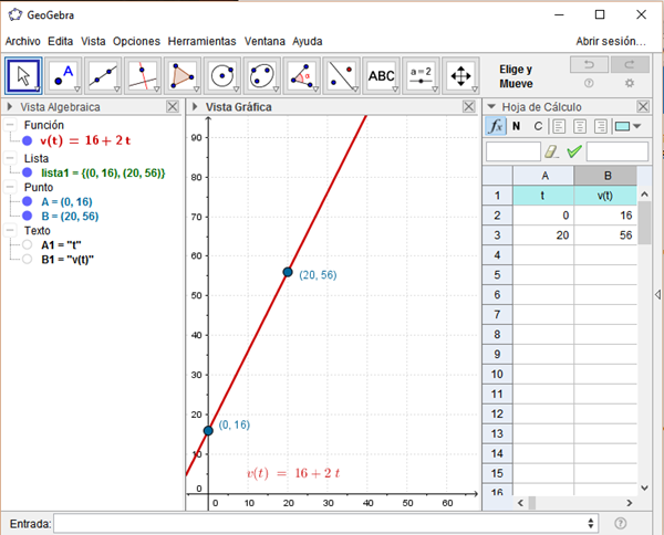 Y este es el enlace con el fichero de Geogebra por si quieres modificar la gráfica: Gráfica de la velocidad GeoGebra.