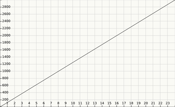 Una máquina envasadora de una fábrica de refrescos llena botellas en la proporción indicada en la tabla. Obtén la función lineal asociada y representa su gráfica.