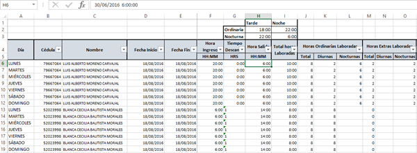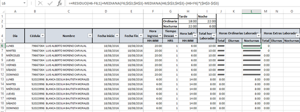 Necesito calcular las horas ordinarias laboradas diurnas y nocturnas, teniendo en cuenta que la jornada diurna va de las 6:00 am hasta las 10:00 pm; y la jornada nocturna de 10:00 pm a 6:00 am.