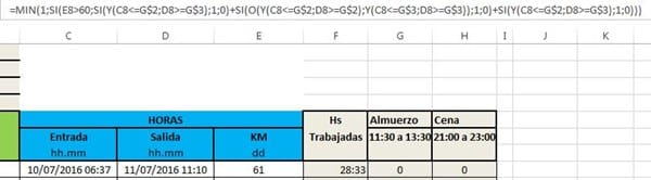 Calcular gastos con fecha hora entre días en base a fórmula de MÍNIMA