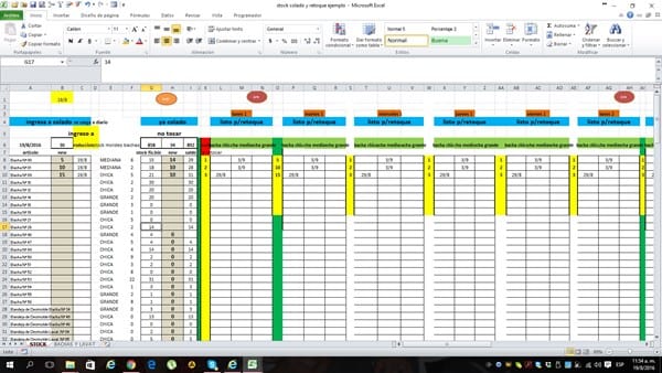 Anoto nuevo valor todos los días en columna B desde celda B8;se suma al valor que tenia anterior en la celda H8 y anota automáticamente fecha en c8 y luego debe anotar en las columnas L;M;N la fecha sumándole 10,15 y 20 días respectivamente a la fecha en que ingrese el dato(c8)como esto lo hago todos los días, la 1era vez lo debe anotar en columnas L, M Y N8, pero al día siguiente debe anotar 1ero la fecha nueva en c8 y luego repetir el proceso de sumarle días y anotarlo en las columnas siguientes, P;Q y R y al día siguiente igual y anotar en T, U y Vademas, las cantidades que voy anotando cada día debe anotarlas en la columna K8, la 1era vez, O8, la 2da vez,, s8, la 3era y así sucesivamenteyo lo había hecho con fórmulas pero tengo el problema de que debo anotar todas las fechas para ver cuando estarán listas las piezas, las cuales llevan un tiempo de secado;importante:las piezas se ubicaran en la columna correspondiente a chica, mediana o grande(L, M o N) acorde a su tamaño, el cual esta anotado en la columna e