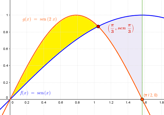 Cómo encuentro el área de la región que se encuentra entre estas funciones trigonométricas?
