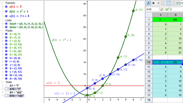 3. Haz una gráfica para cada función apoyándote de sus correspondientes tablas. Considera el eje de las x como el valor del tiempo. Recuerda que para graficar puedes apoyarte del subtema 6.1 “Graficar una función lineal”.