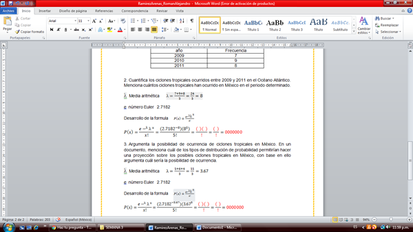 1. Investiga sobre el número de ciclones tropicales ocurridos en México de 2009 a 2011 en el Océano Atlántico.