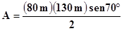 Calcular el área de una parcela triangular sabiendo que dos lados miden 80m y 130m y forman entre ellos un angulo de 70 grados