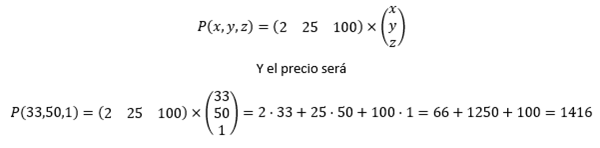 Una empresa telefónica ofrece tres servicios de comunicación: llamadas telefónicas, internet y televisión por cable; un usuario consumió en el mes de marzo del presente año 33 llamadas telefónicas, 50 gigabytes de internet, 1 servicio de televisión por cable. El costo unitario por llamada telefónica es de $2.00, el costo por gigabyte de internet es de $25.00 y el costo por servicio de cable es de $100.00. Determina por medio de matrices las operaciones que se deberán realizar para determinar el monto lo que deberá pagar el usuario