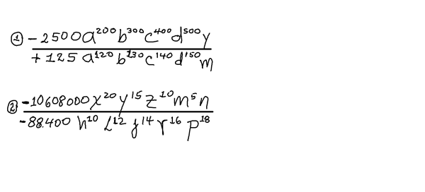Realizar las Siguientes DIVISIONES DE MONOMIO ENTRE MONOMIO...(CON TODOS LOS PASOS, ESCRIBIENDO LA DIVISIÓN RESUELTA)