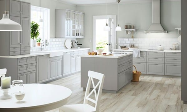 Otro ejemplo podría ser elegir con los colores gris o chocolate, tan de moda ahora y que combina bien con todo. Dependería también del tamaño y luminosidad de la cocina, aunque no tendrías problemas con el gris claro o gris perla. No te reduciría visualmente el espacio, cosa que puede ocurrir con los colores vivos e intensos. Aunque siempre puedes emplearlos con moderación o solo en detalles.