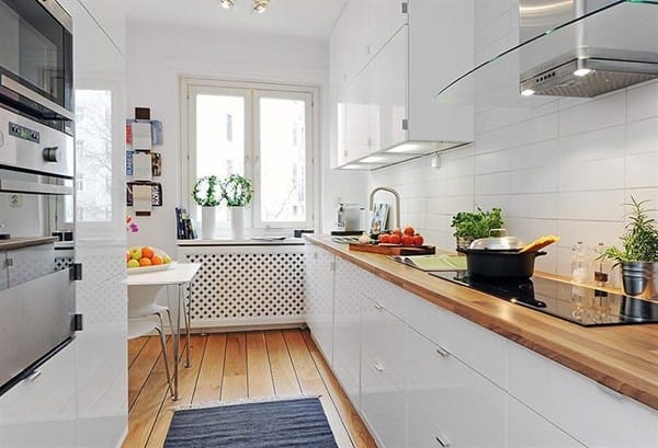 Al ir casi todo de blanco, te viene bien cualquier color. Depende de tus gustos y también de tu estilo decorativo. Por ejemplo, puedes tener una cocina de estilo nórdico si pones los muebles en blanco y la encimera en madera clara o de color negro y das un toque de color al comedor con las sillas.