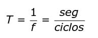 b) Posteriormente, obtén el periodo, que es el tiempo que tarda una vuelta y es inverso a la frecuencia. Su fórmula es: