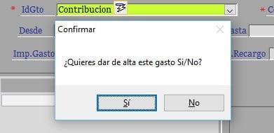 If MsgBox("¿Quieres dar de alta este gasto Si/No? ", vbYesNo, "Confirmar") = vbYes Then