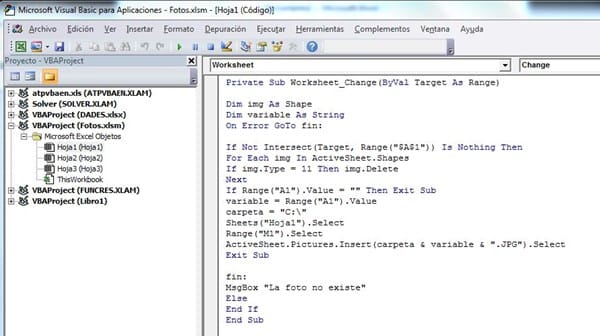 Necesito una Macro que me permita en excel Insertar una foto automáticamente, de acuerdo a un código asignado a una celda.