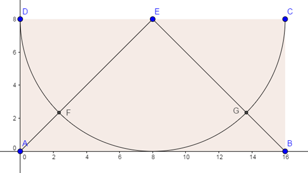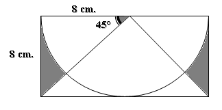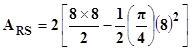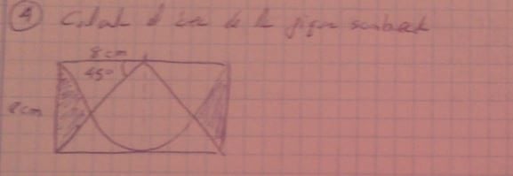 ¿Alguien me puede ayudar con este ejercicio? Por más que intento hacerlo el área sombreada me da negativa al restarle al rectángulo de 16x8 el triángulo de base 16 y altura 8 y el semicírculo. Algo debo estar haciendo mal.