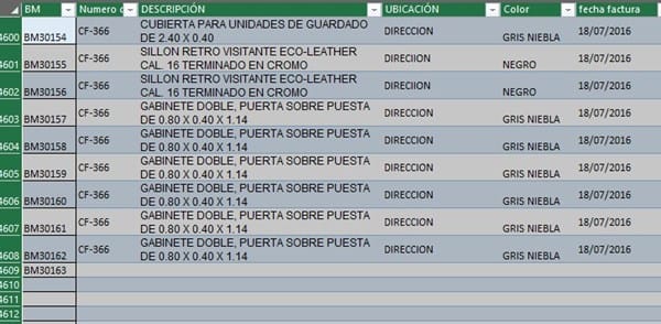 Esta es la captura en donde se van guardando los registros, acutualmente hay 30162 registros capturados, lo que se pone manual es la columan "A" la que son los folios Personalizados BMXXX