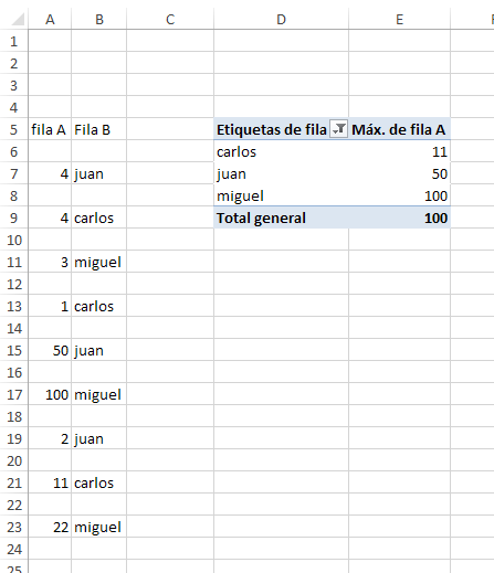 Sin embargo, en mi modesta opinión, te sería más útil una tabla dinámica que te mostraría los valores máximos para cada persona de la tabla y a medida que cambies o agregues datos, sólo necesitarás actualizar la tabla para que te muestre los nuevos resultados.