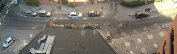 por el hueco que dejó, puede pasar por ahí perfectamente un camión de basura sin tener que hacer maniobra siquiera, creo que en la foto se ve perfectamente que se ensancha la carretera donde estoy aparcado y el espacio que dejó es incluso mayor que donde están los coches bien aparcados.