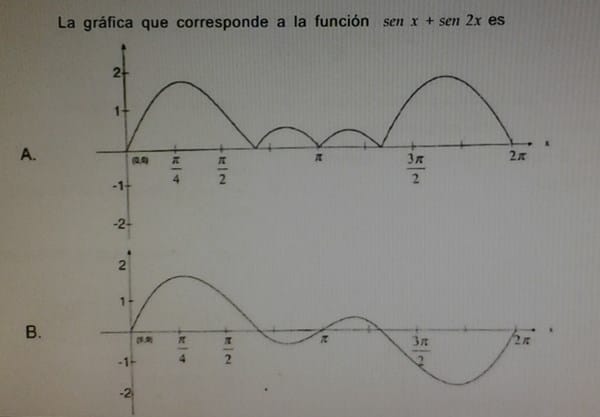 Si me dan las gràficas de las funciones senx y sen2x, como hago para saber cual es la gràfica de senx + sen2x, solo sè que el periodo de la funciòn suma es 2pi, es una pregunta tipo examen de admisiòn en el cual apenas hay 1 minuto por pregunta, necesito una explicaciòn de como resolver este ejercicio, gracias.