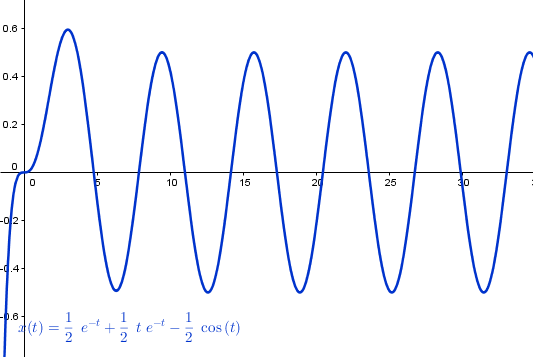 $$\begin{align}&x(0)=x´(0)=0\end{align}$$Grafica la solución de la ED