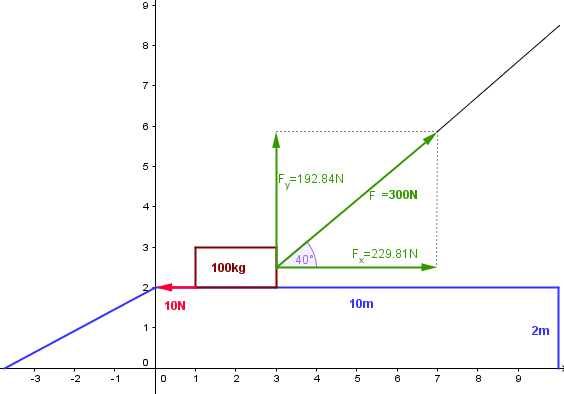 Fx = F·cos(40º) = 300N · cos(40º) =229.81N