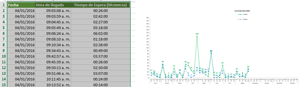 ¿Cómo podría graficar dos columnas que tienen información de horas con minutos?, esto con la finalidad de llevar acabo un análisis de horas pico de un servicio de atención, saludos amigos expertos y compañeros del ramo