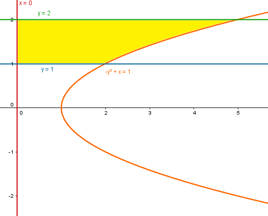 x=1+y^2, x=0, y=1, y=2