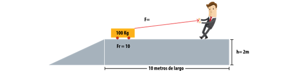 Una persona necesita jalar a lo largo de 10 m y sobre un piso que tiene 2 m de altura, un carrito que tiene una masa de 100 Kg.