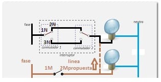Tengo una llave doble conmutada, en un lado se utiliza como tal (lleva tres cables), y da servicio a un punto de luz. En el otro lado de manera independiente solo se utiliza como interruptor (dos cables) y da servicio a otro punto de luz distinto. Quiero eliminar el interruptor y que sea el conmutador el que de servicio a ambos puntos de luz. No sé si puede hacer ni cómo conectar los cables. Información aparte, todos los cables son del mismo color.