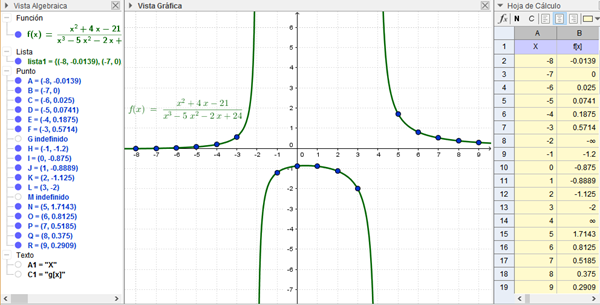 3.- En el mismo archivo que elaboraste el procedimiento anterior, tabula y gráfica con un rango para el eje por de -8 a 9, cada una de las siguientes funciones: