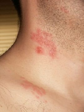 Tal y como dice Adri puede ser las ampollas del Herpes Zóster. Mi padre acaba de pasarlo y no es nada grave, es contagioso mientras las ampollas no se secan.