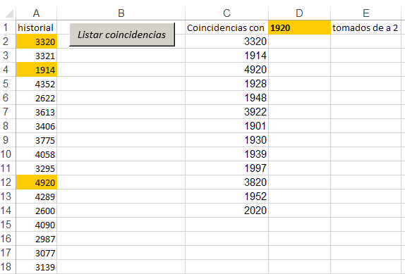 Afortunadamente, una modificación menor sobre la misma rutina evaluará cifra por cifra en las comparaciones y sólo listará aquellos que tengan al menos una coincidencia: