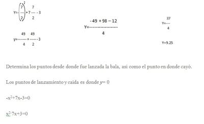 A) Una bala se dispara desde el piso formando una trayectoria tipo parábola, donde su ecuación es: y = -x2 + 7x – 3.