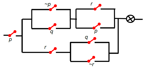 Encontrar la proposición y construir la tabla de verdad del siguiente circuito lógico
