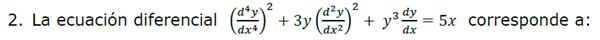 Indicar a que tipo de ecuación corresponde el siguiente planteamiento de acuerdo a las opciones: